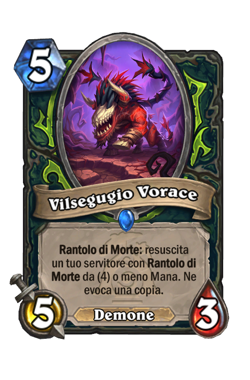 GUIDA GENERALE: Classe che tende verso l'aggressivo. I mazzi vanno costruiti tempo/midrange. Sinergizza bene con i demoni in generale. Una delle combo più forti è "vilsegugio vorace + deathrattle buono costo 4", proprio per questo fare massima attenzione quando si picka un dathrattle e scegliere solamente carte che si è felici di rievocare dal vilsegugio.