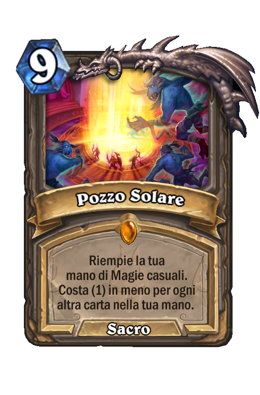 GUIDA GENERALE: Classe piuttosto lenta che punta a vincere i game generando valore, dotata di grandi removal (sia a target singolo che aoe), ottime capacità di cura. Tutte le carte dedicate che ha ricevuto sono ottime. "dardo di fuoco eterno" in combo con l'arma di medivh inflgge 6 danni e, avendo lifesteal, cura di 12!!!